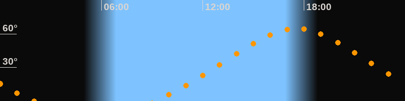 | Höchster Stand (Kulmination) | 17:34 Uhr (h = 64,6°) |