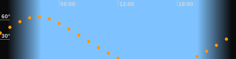 | Untergang | 12:15 Uhr im Nordwesten (αAz = 313,5°) |