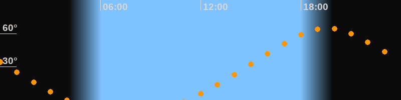 | Höchster Stand (Kulmination) | 19:34 Uhr (h = 64,6°) |