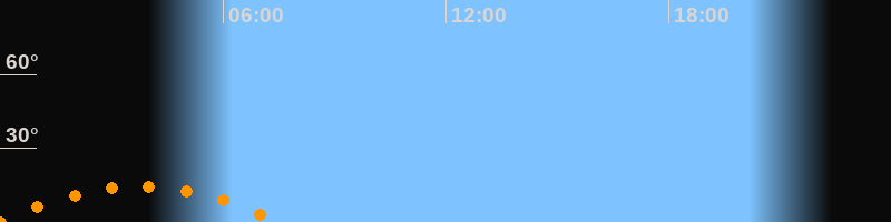 | Untergang | 07:32 Uhr im Südwesten (αAz = 229,6°) |