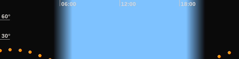 | Untergang | 04:55 Uhr im Südwesten (αAz = 229,6°) |