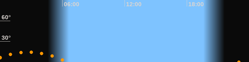 | Untergang | 06:31 Uhr im Südwesten (αAz = 229,6°) |