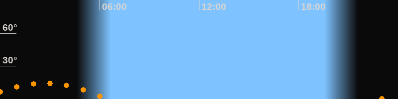 | Untergang | 06:27 Uhr im Südwesten (αAz = 229,6°) |
