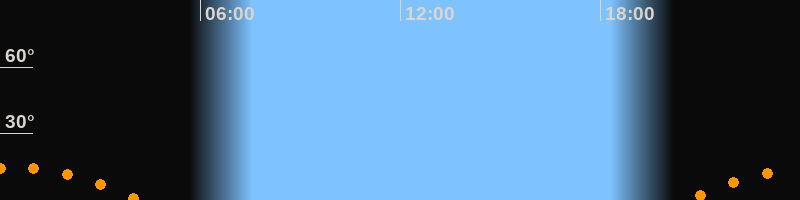 | Untergang | 04:14 Uhr im Südwesten (αAz = 229,6°) |