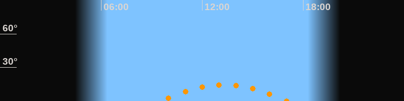 | Aufgang | 09:30 Uhr im Südosten (αAz = 130,4°) |