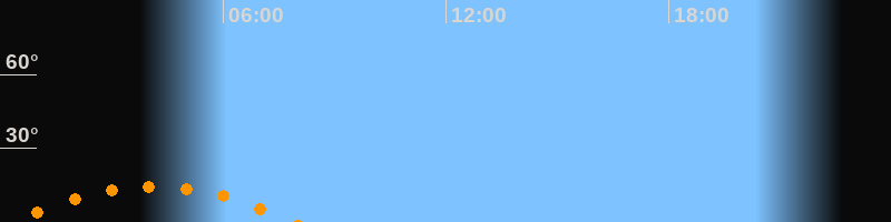 | Untergang | 07:55 Uhr im Südwesten (αAz = 229,6°) |