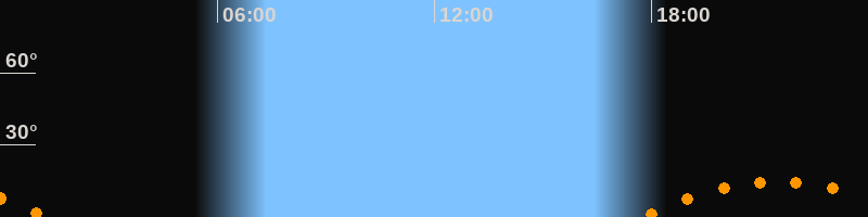 | Aufgang | 17:43 Uhr im Südosten (αAz = 130,4°) |