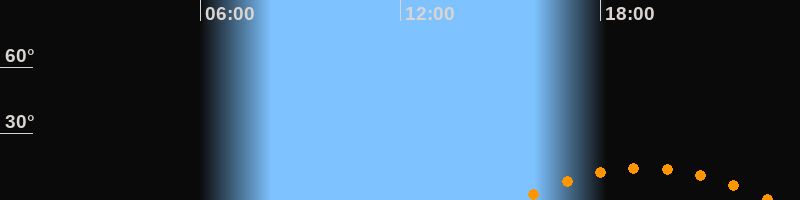 | Aufgang | 15:33 Uhr im Südosten (αAz = 130,4°) |