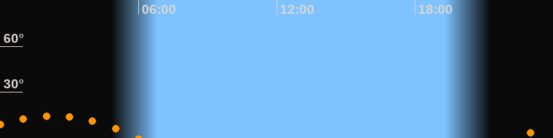 | Aufgang | 22:24 Uhr im Südosten (αAz = 130,4°) |