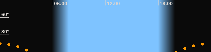 | Untergang | 03:36 Uhr im Südwesten (αAz = 229,6°) |