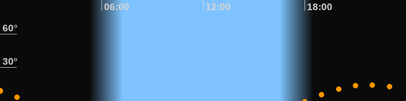 | Aufgang | 17:59 Uhr im Südosten (αAz = 130,4°) |