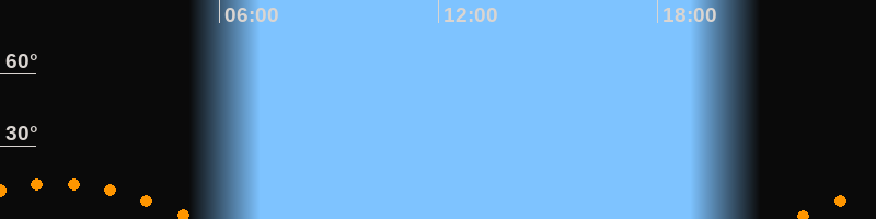 | Untergang | 05:20 Uhr im Südwesten (αAz = 229,6°) |