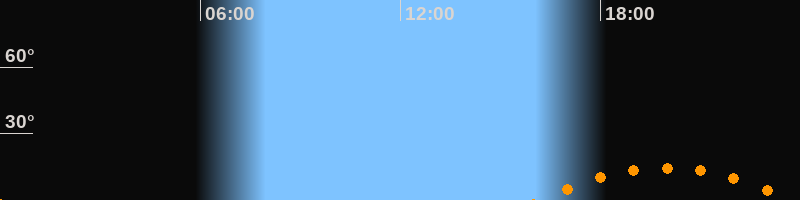 | Aufgang | 16:10 Uhr im Südosten (αAz = 130,4°) |
