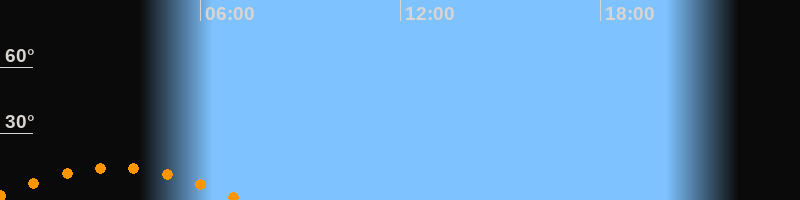 | Untergang | 07:15 Uhr im Südwesten (αAz = 229,6°) |