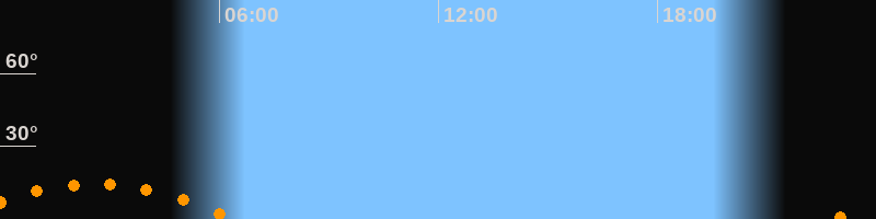 | Untergang | 06:23 Uhr im Südwesten (αAz = 229,6°) |
