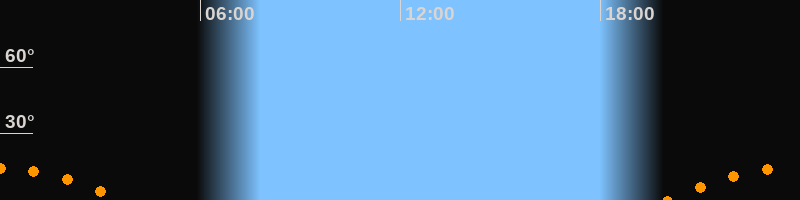 | Untergang | 03:38 Uhr im Südwesten (αAz = 229,6°) |