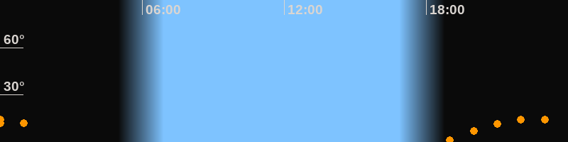 | Aufgang | 18:44 Uhr im Südosten (αAz = 130,4°) |