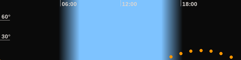 | Untergang | 23:46 Uhr im Südwesten (αAz = 229,6°) |