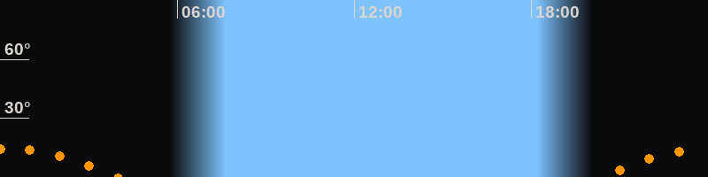 | Untergang | 04:00 Uhr im Südwesten (αAz = 229,6°) |