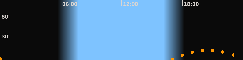 | Aufgang | 16:45 Uhr im Südosten (αAz = 130,4°) |