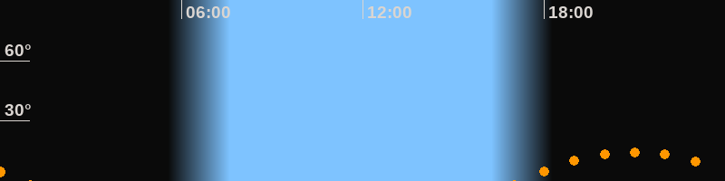 | Aufgang | 17:10 Uhr im Südosten (αAz = 130,4°) |
