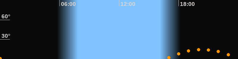 | Aufgang | 16:34 Uhr im Südosten (αAz = 130,4°) |