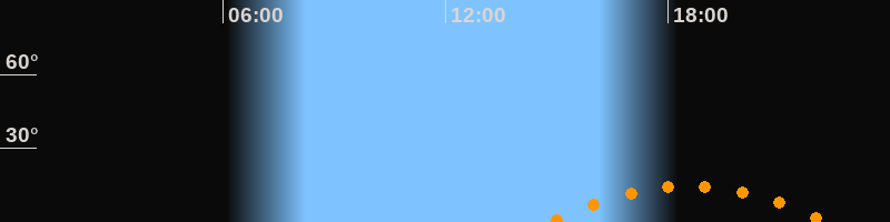 | Aufgang | 14:46 Uhr im Südosten (αAz = 130,4°) |