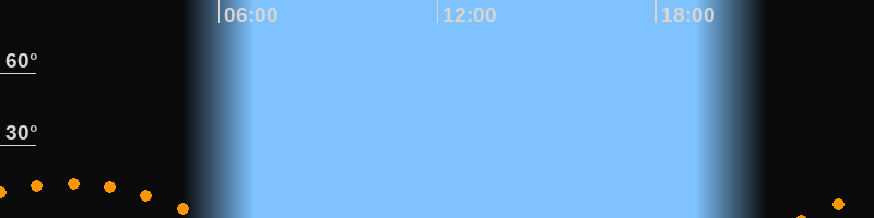 | Untergang | 05:39 Uhr im Südwesten (αAz = 229,6°) |