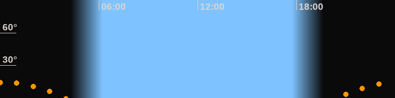 | Untergang | 04:01 Uhr im Südwesten (αAz = 229,6°) |