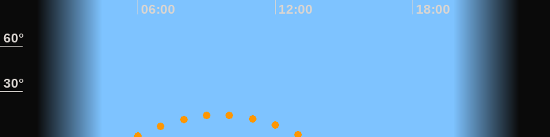 | Untergang | 13:20 Uhr im Südwesten (αAz = 229,6°) |