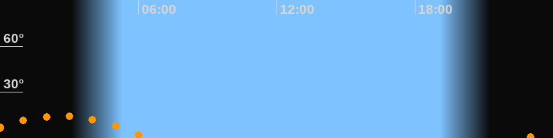 | Untergang | 06:24 Uhr im Südwesten (αAz = 229,6°) |