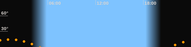| Untergang | 04:57 Uhr im Südwesten (αAz = 229,6°) |