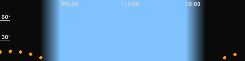 | Aufgang | 21:11 Uhr im Südosten (αAz = 130,4°) |