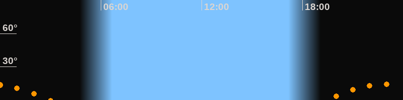 | Untergang | 02:59 Uhr im Südwesten (αAz = 229,6°) |