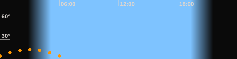 | Untergang | 06:48 Uhr im Südwesten (αAz = 229,6°) |