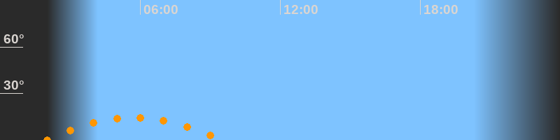 | Untergang | 09:30 Uhr im Südwesten (αAz = 229,6°) |