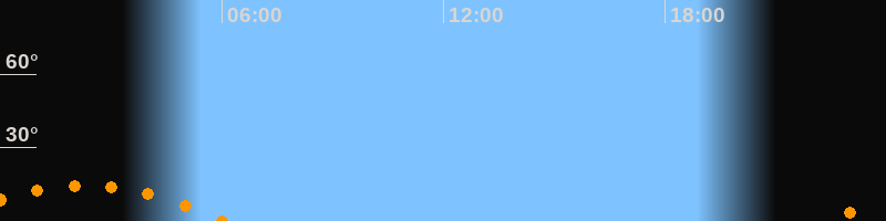 | Untergang | 06:03 Uhr im Südwesten (αAz = 229,6°) |