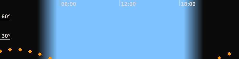 | Untergang | 05:16 Uhr im Südwesten (αAz = 229,6°) |