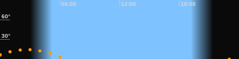 | Untergang | 06:31 Uhr im Südwesten (αAz = 229,6°) |