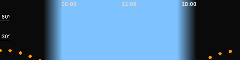 | Untergang | 03:58 Uhr im Südwesten (αAz = 229,6°) |
