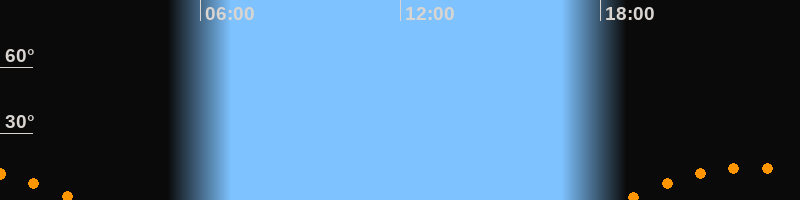 | Untergang | 02:20 Uhr im Südwesten (αAz = 229,6°) |