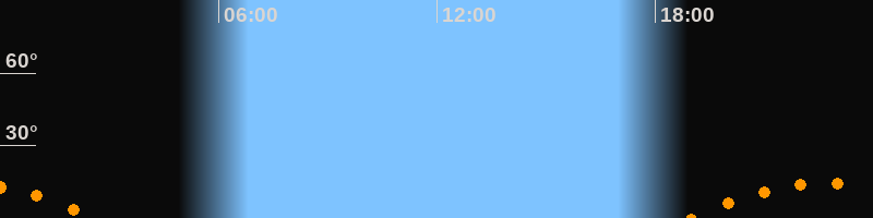 | Untergang | 02:36 Uhr im Südwesten (αAz = 229,6°) |