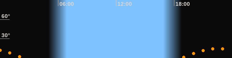 | Aufgang | 18:44 Uhr im Südosten (αAz = 130,4°) |