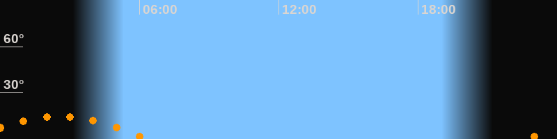 | Untergang | 06:19 Uhr im Südwesten (αAz = 229,6°) |