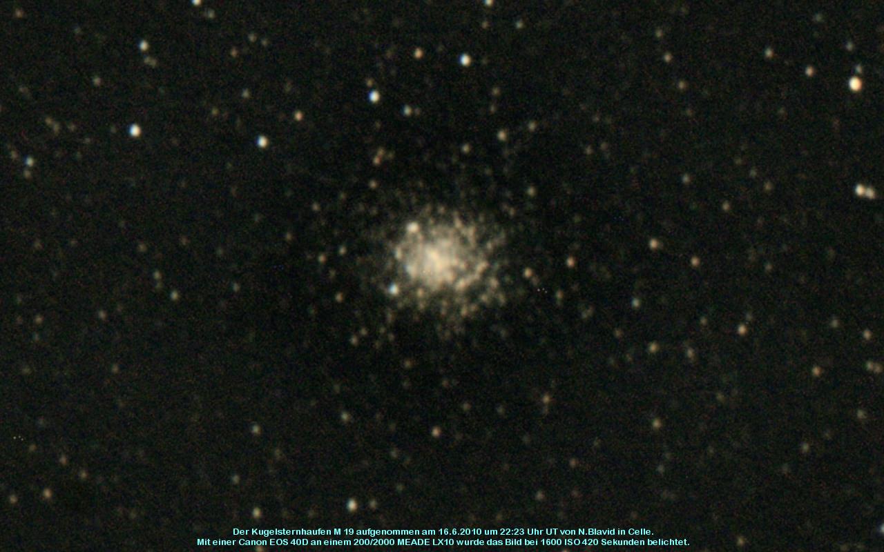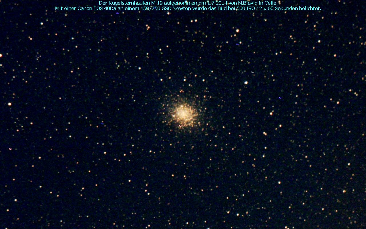 Der Kugelsternhaufen M 19 ist vom Typ VIII. Entdeckt wurde er am 5. Juni 1764 von Charles Messier.