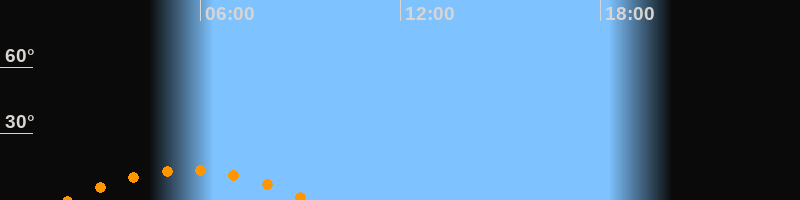| Untergang | 09:16 Uhr im Südwesten (αAz = 227,6°) |