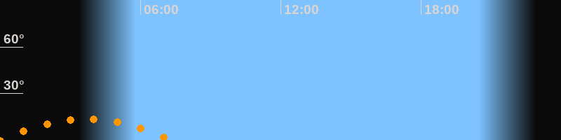 | Untergang | 07:20 Uhr im Südwesten (αAz = 227,6°) |