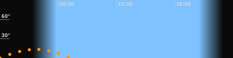 | Untergang | 07:18 Uhr im Südwesten (αAz = 227,6°) |