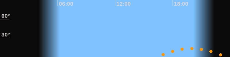 | Aufgang | 16:17 Uhr im Südosten (αAz = 132,4°) |