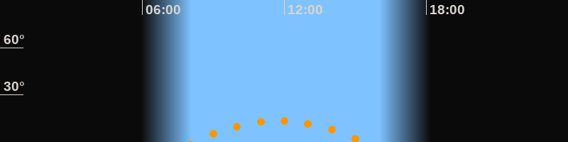 | Untergang | 15:25 Uhr im Südwesten (αAz = 227,6°) |